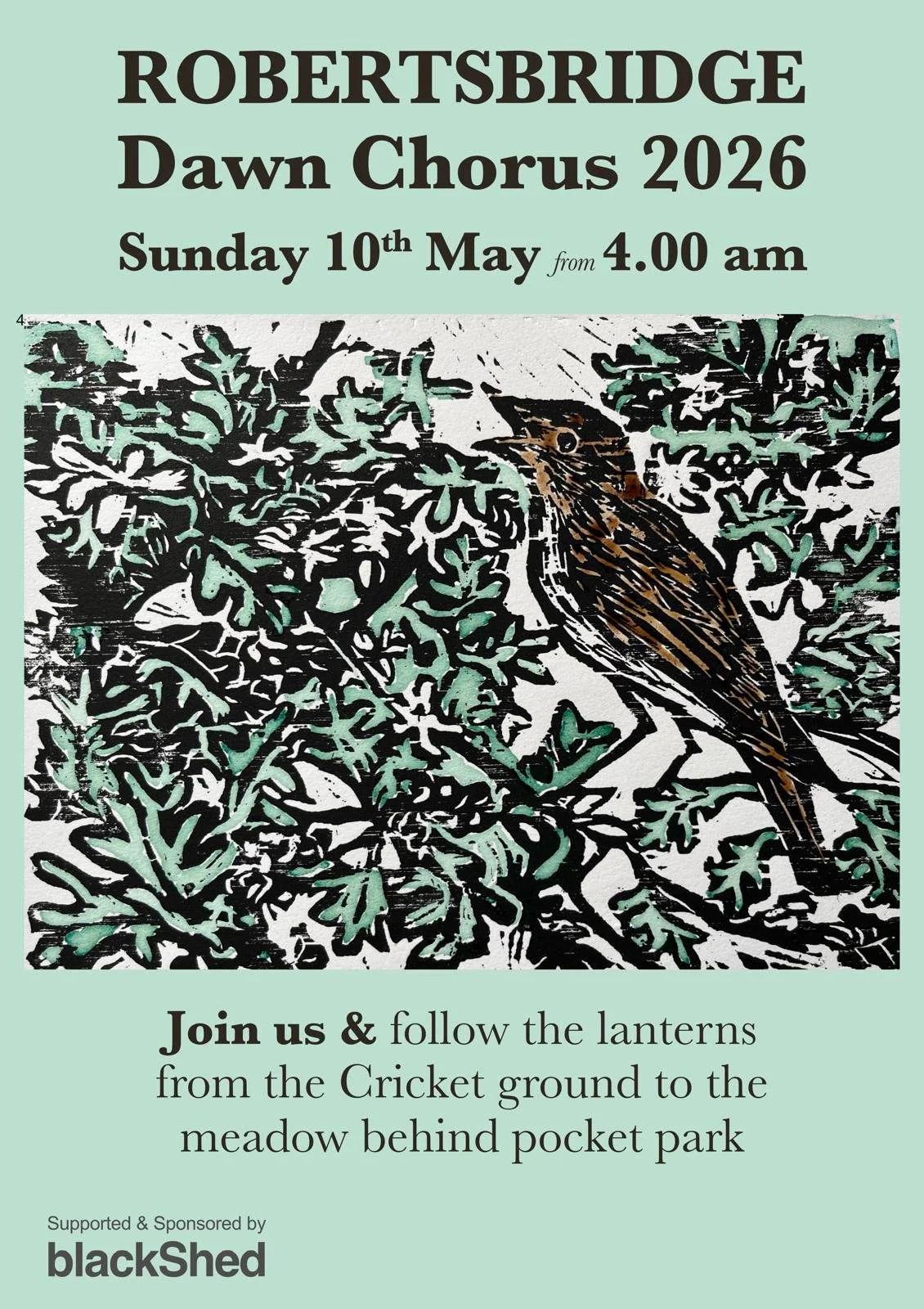 Sunday May 10th - Robertsbridge Dawn Chorus, gather with us in the Pocket Park to enjoy this springtime wonder. 4:00am until approx. 6:30am